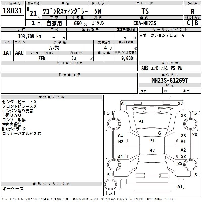 | TS | CBA-MH23S | K6A | FF | CVT | 658cc | 64ps(47kW)/6000rpm | AИ-92 | 1 554 000 | |