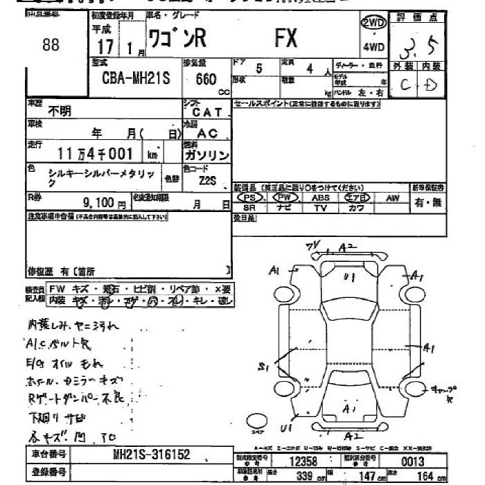FX CBA-MH21S K6A FF 4AT 658cc 54ps(40kW)/6500rpm AИ-92 1 013 250