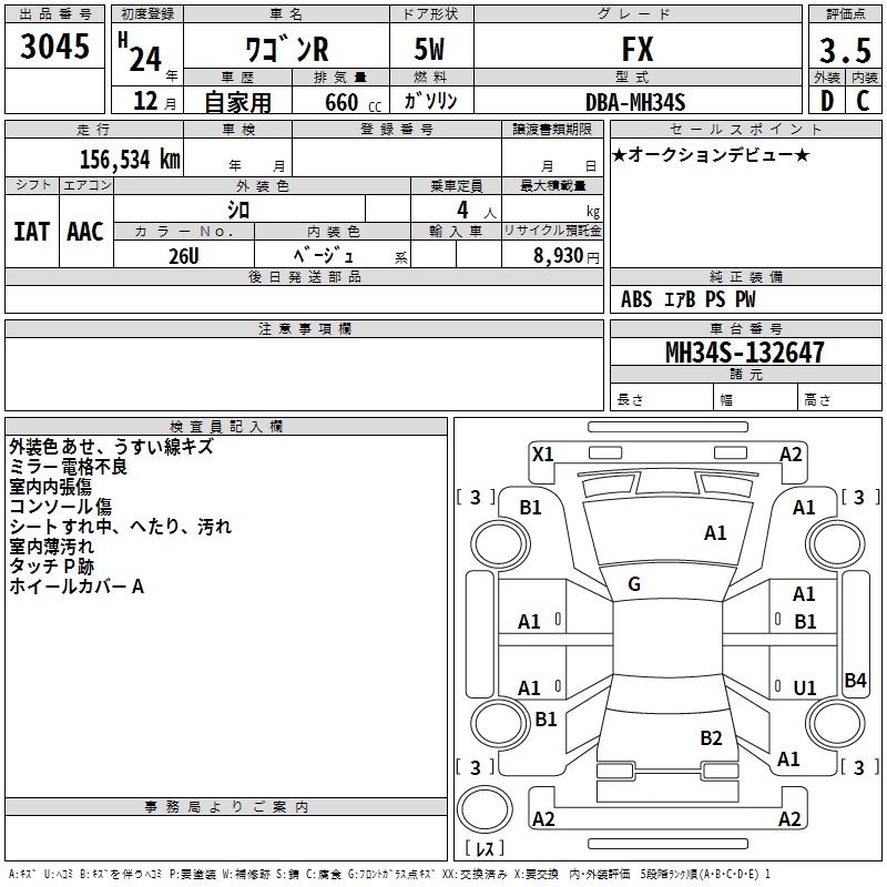 | FX LIMITED | DBA-MH34S | R06A | FF | CVT | 658cc | 52ps(38kW)/6000rpm | AИ-92 | 1 270 500 | |