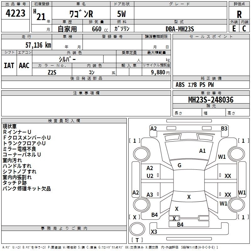 | FX | DBA-MH23S | K6A | FF | 5MT | 658cc | 54ps(40kW)/6500rpm | AИ-92 | 1 044 750 | |