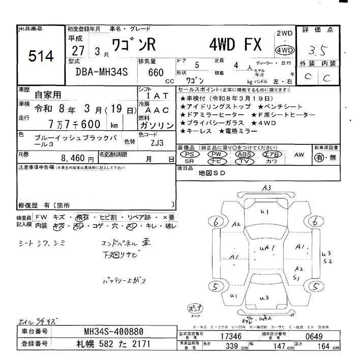 | FX LIMITED | DAA-MH44S | R06A | FF | CVT | 658cc | 52ps(38kW)/6500rpm | AИ-92 | 1 215 000 |