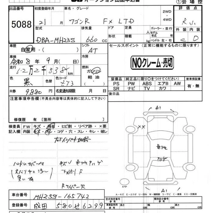 | FX | DBA-MH23S | K6A | Full-time 4WD | 5MT | 658cc | 54ps(40kW)/6500rpm | AИ-92 | 1 162 350 | |