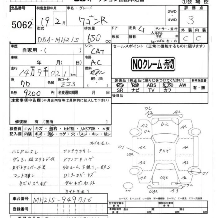 | FA | DBA-MH22S | K6A | FF | 5MT | 658cc | 54ps(40kW)/6500rpm | AИ-92 | 819 000 | |