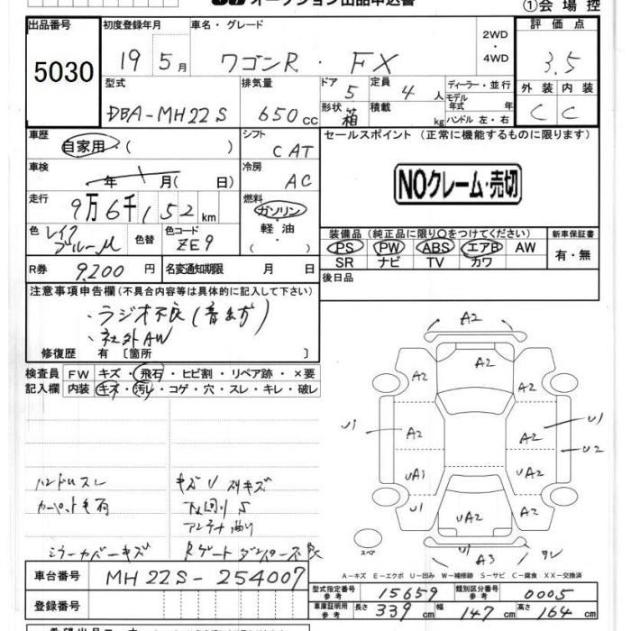 FX-S LIMITED DBA-MH22S K6A FF 4AT 658cc 54ps(40kW)/6500rpm AИ-92 1 092 000