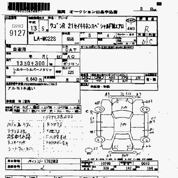 | FM-G LIMITED | LA-MC22S | K6A | Full-time 4WD | 4AT | 658cc | 54ps(40kW)/6500rpm | AИ-92 | 1 175 000 | |
