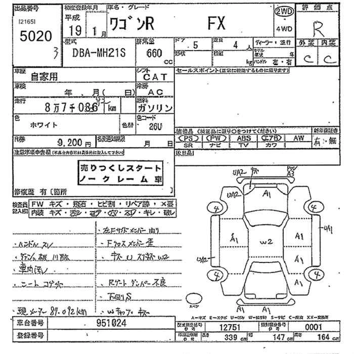 | FX-S LIMITED | DBA-MH22S | K6A | Full-time 4WD | 4AT | 658cc | 54ps(40kW)/6500rpm | AИ-92 | 1 209 600 | |