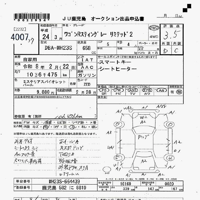 | FX LIMITED | DBA-MH34S | R06A | FF | CVT | 658cc | 52ps(38kW)/6000rpm | AИ-92 | 1 270 500 | |