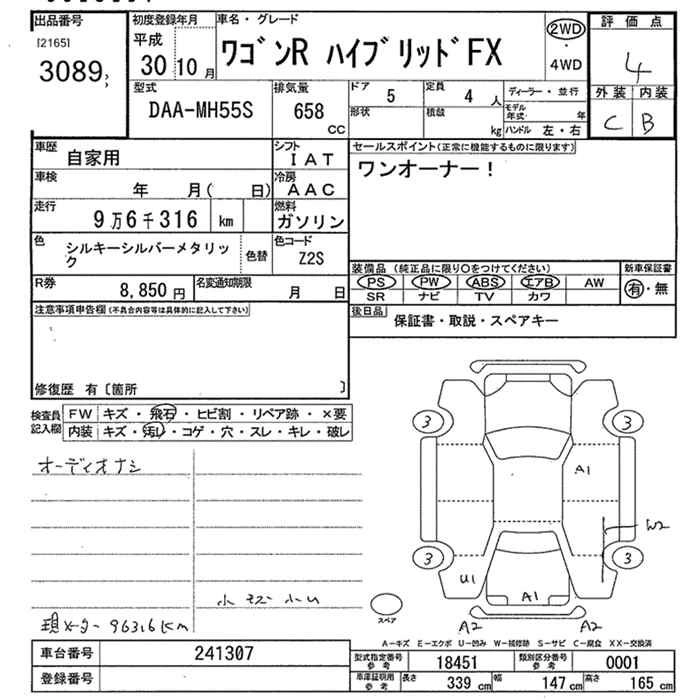 | HYBRID FX LIMITED | DAA-MH55S | R06A | FF | CVT | 658cc | 52ps(38kW)/6500rpm | AИ-92 | 1 312 200 |