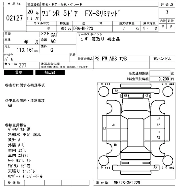| FX LIMITED | DBA-MH23S | K6A | FF | CVT | 658cc | 54ps(40kW)/6500rpm | AИ-92 | 1 181 250 | |