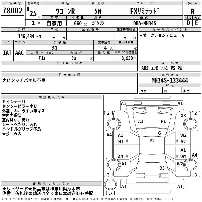 FX DBA-MH34S R06A FF CVT 658cc 52ps(38kW)/6000rpm AИ-92 1 160 250