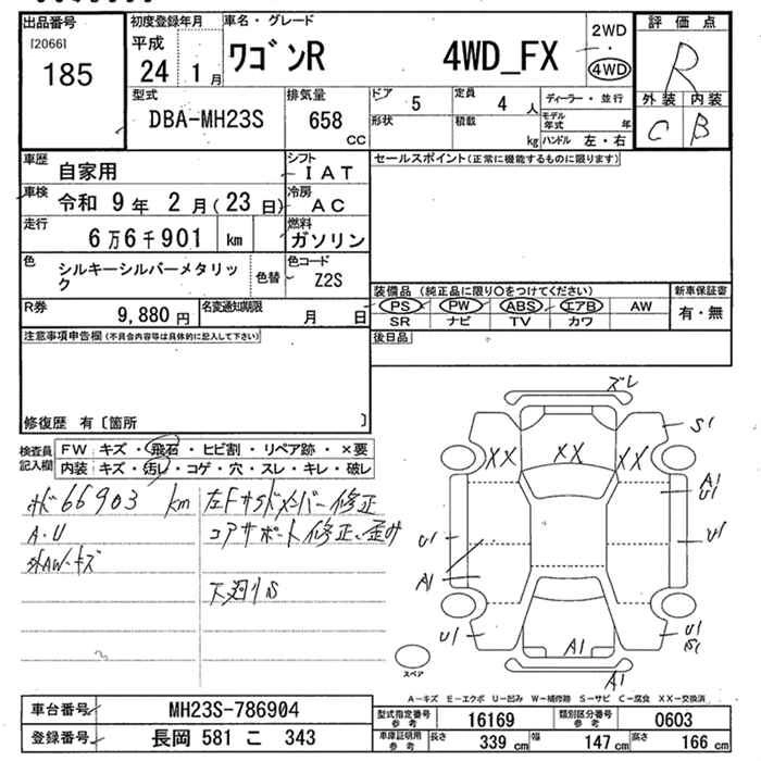 | FX LIMITED | DBA-MH23S | K6A | FF | 4AT | 658cc | 54ps(40kW)/6500rpm | AИ-92 | 1 181 250 | |