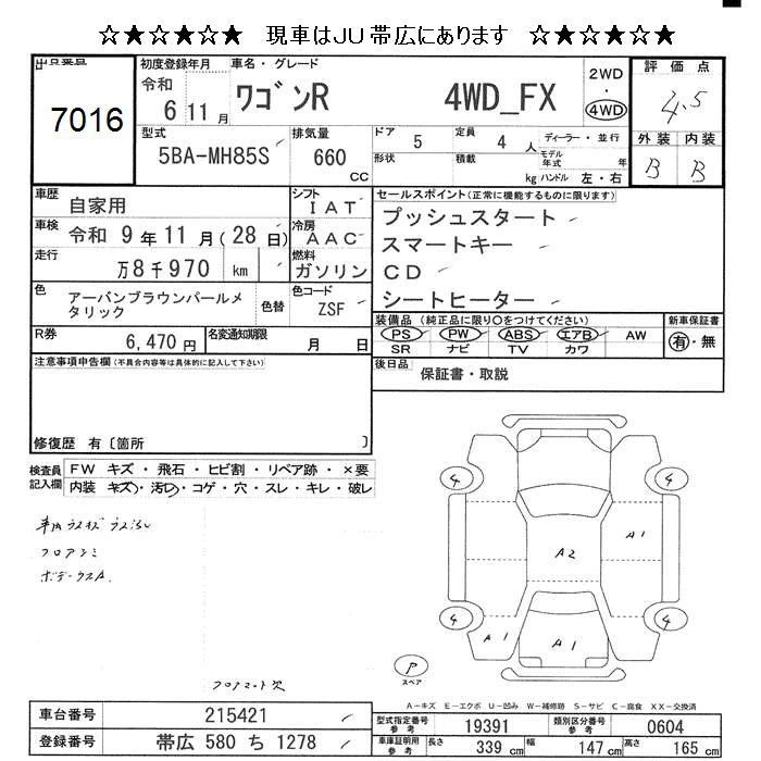 SUZUKI WAGON R 2024 г., лот № 7016