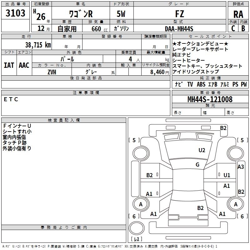 | FX | DBA-MH34S | R06A | FF | CVT | 658cc | 52ps(38kW)/6000rpm | AИ-92 | 1 283 040 | |