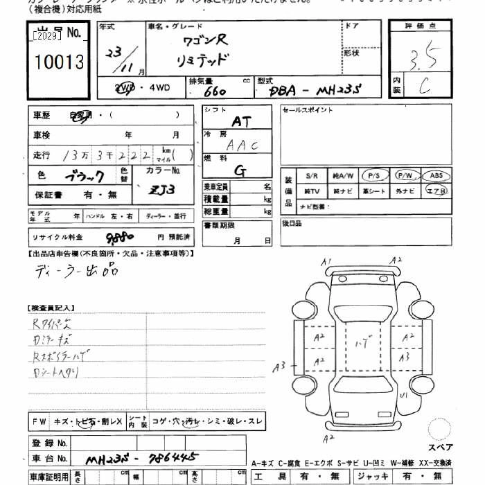 | FX LIMITED IDLING STOP | DBA-MH23S | K6A | FF | CVT | 658cc | 54ps(40kW)/6500rpm | AИ-92 | 1 307 250 | |