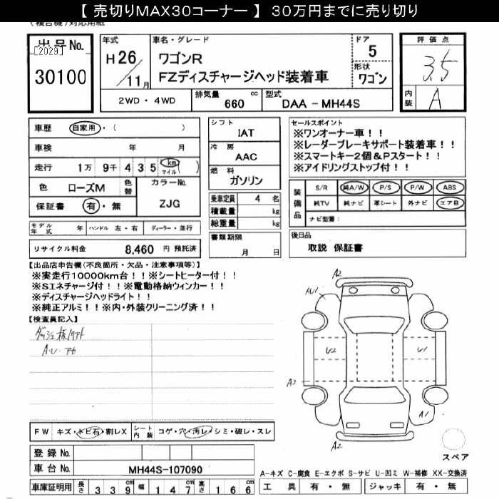 19 000 км КузовMH44S КомплектацияFZ HID (HIGH INTENSITY DISCHARGE) HEAD LIGHT SOU TEA K CAR