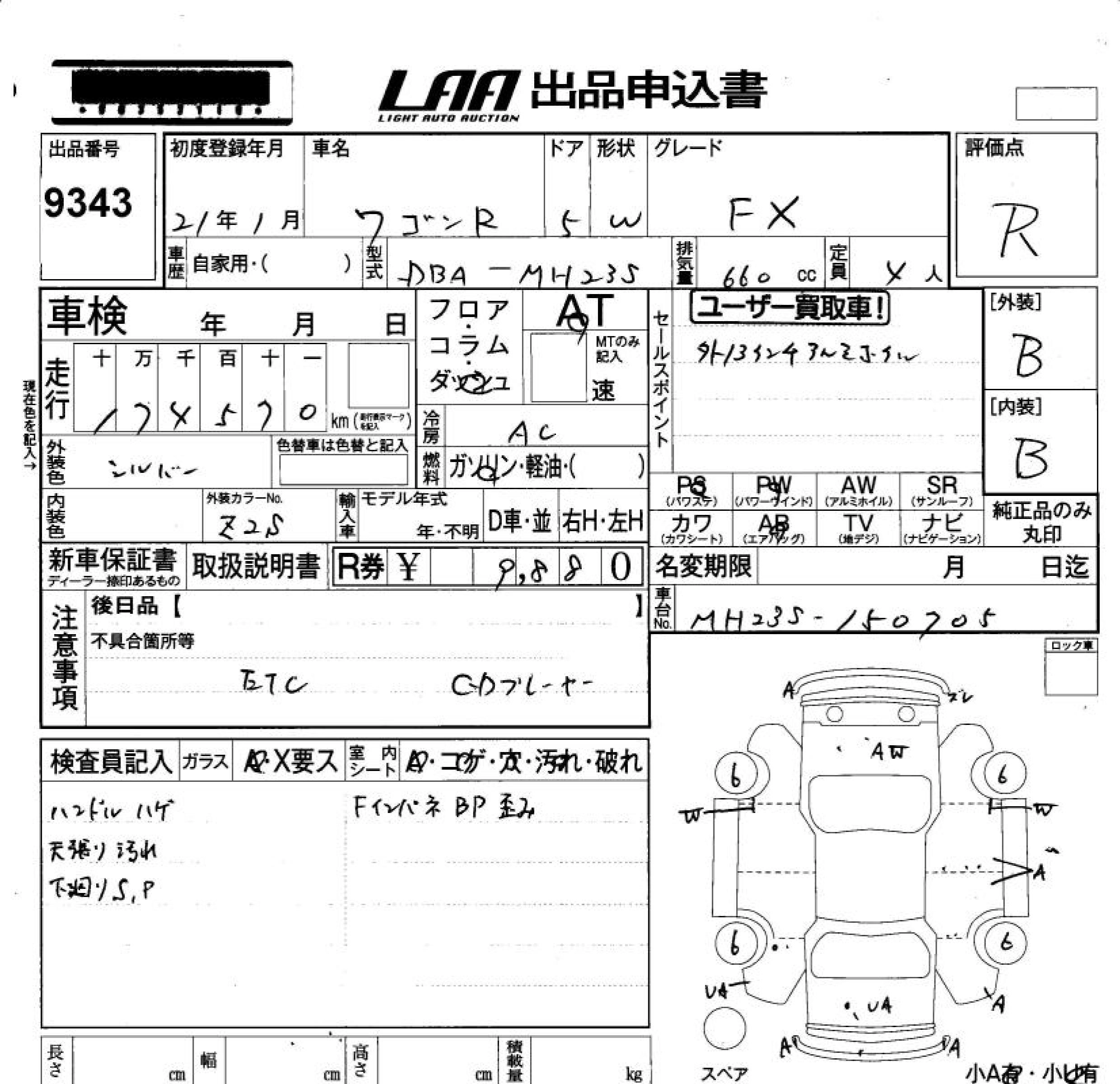 | FX LIMITED II | DBA-MH23S | K6A | FF | CVT | 658cc | 54ps(40kW)/6500rpm | AИ-92 | 1 212 750 | |