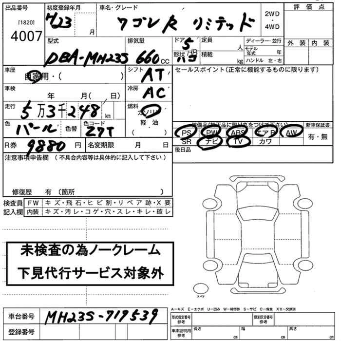 | LIMITED II | DBA-MH23S | K6A | FF | CVT | 658cc | 54ps(40kW)/6500rpm | AИ-92 | 1 281 000 |