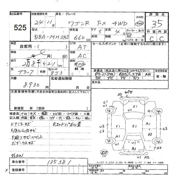 SUZUKI WAGON R 2012 г., лот № 525
