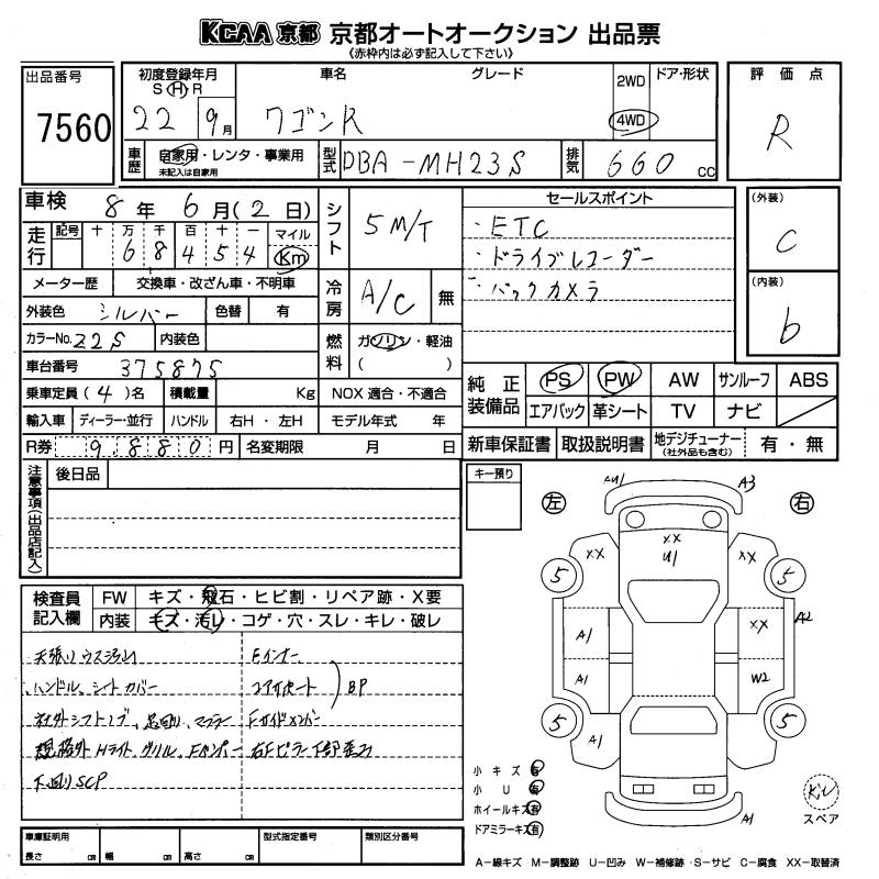 | FX | DBA-MH23S | K6A | FF | 4AT | 658cc | 54ps(40kW)/6500rpm | AИ-92 | 1 071 000 |