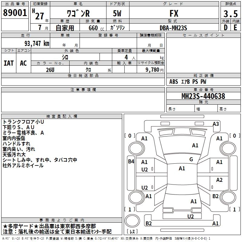 | FX | DBA-MH34S | R06A | FF | CVT | 658cc | 52ps(38kW)/6500rpm | AИ-92 | 1 144 800 | |