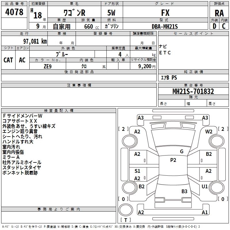 Год выпуска2006 Пробег 97 000 км КузовMH21S КомплектацияFX