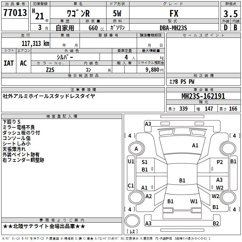 FX DBA-MH23S K6A FF 5MT 658cc 54ps(40kW)/6500rpm AИ-92 1 044 750