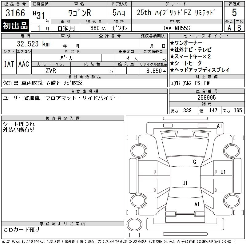 | HYBRID FZ | DAA-MH55S | R06A | FF | CVT | 658cc | 52ps(38kW)/6500rpm | AИ-92 | 1 375 000 | |