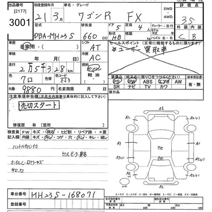 | FX | DBA-MH23S | K6A | FF | 4AT | 658cc | 54ps(40kW)/6500rpm | AИ-92 | 1 044 750 |