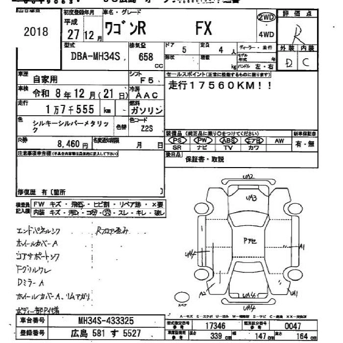 FX DBA-MH34S R06A FF 5MT 658cc 52ps(38kW)/6000rpm AИ-92 1 134 000