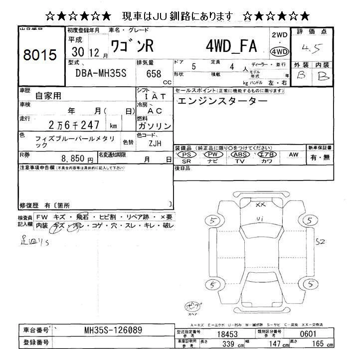 SUZUKI WAGON R 2018 г., лот № 8015