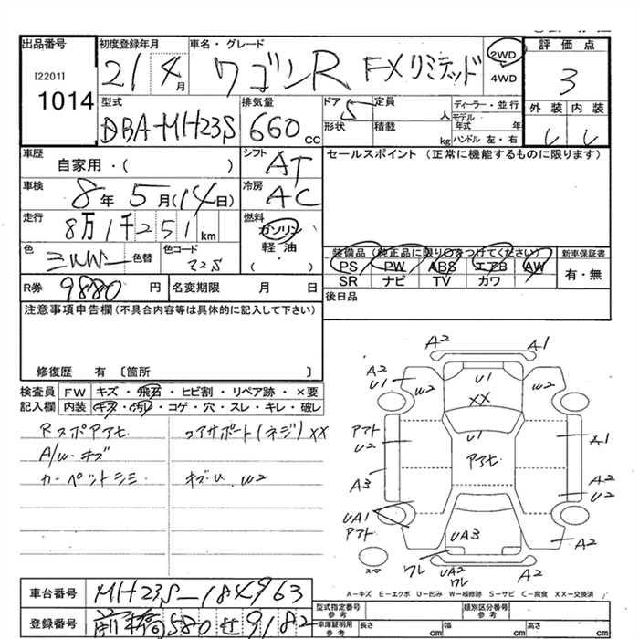 FX DBA-MH23S K6A FF 5MT 658cc 54ps(40kW)/6500rpm AИ-92 1 044 750