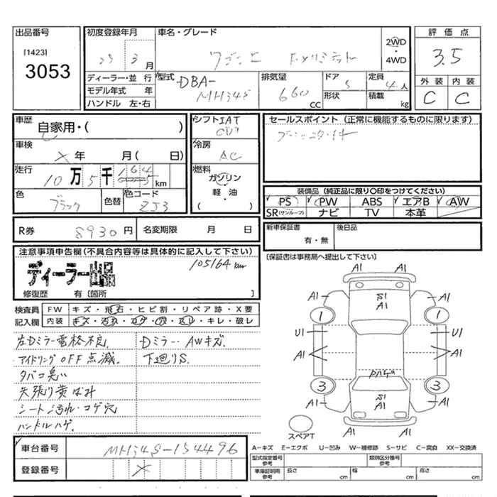 FX DBA-MH34S R06A FF CVT 658cc 52ps(38kW)/6000rpm AИ-92 1 160 250