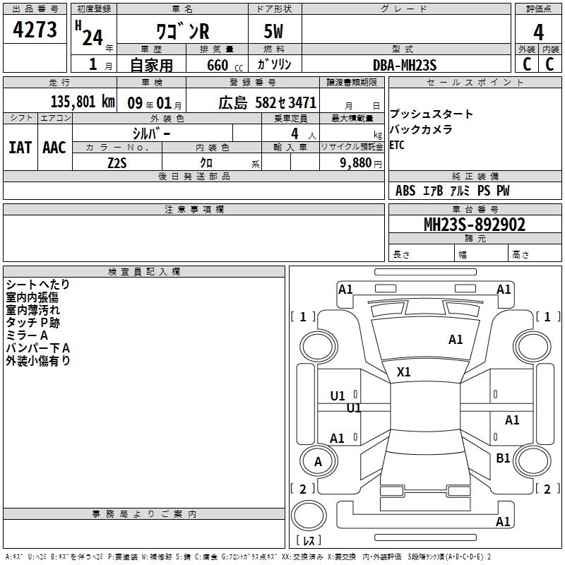 | FX | DBA-MH23S | K6A | FF | 4AT | 658cc | 54ps(40kW)/6500rpm | AИ-92 | 1 071 000 |