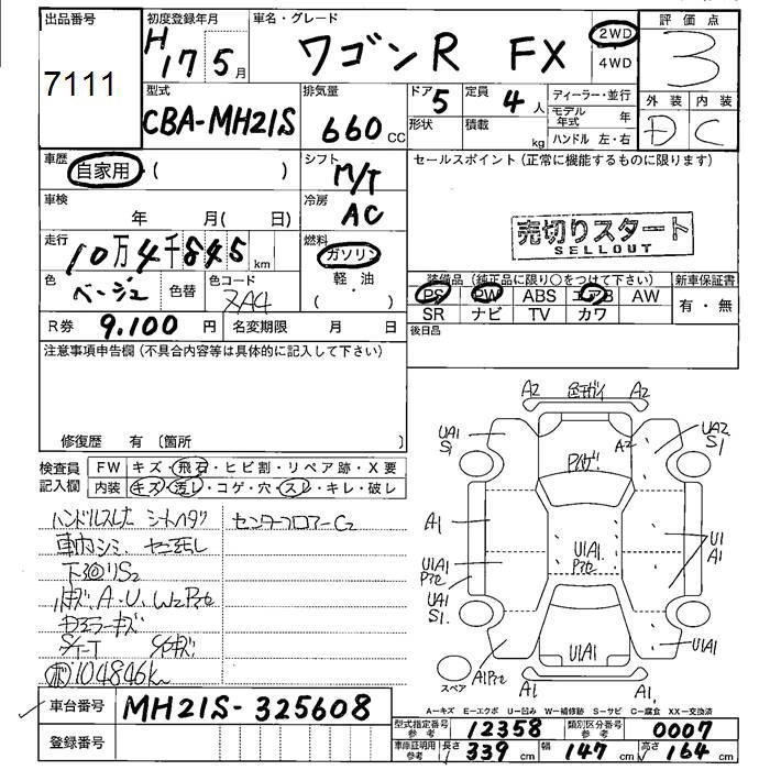 | FX-S LIMITED | DBA-MH21S | K6A | Full-time 4WD | 4AT | 658cc | 54ps(40kW)/6500rpm | AИ-92 | 1 193 850 | |