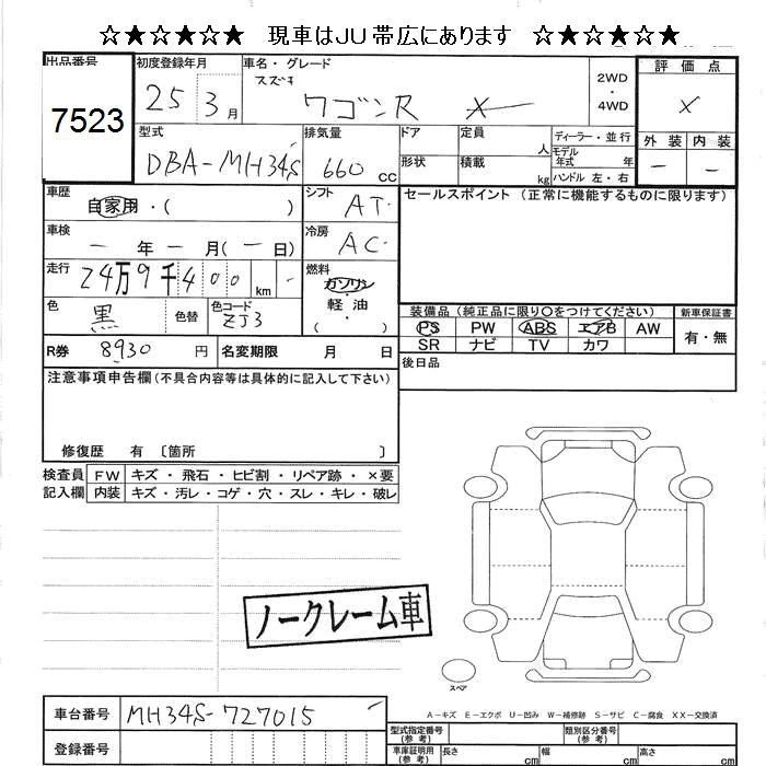 | FX LIMITED | DBA-MH34S | R06A | FF | CVT | 658cc | 52ps(38kW)/6000rpm | AИ-92 | 1 249 500 | |