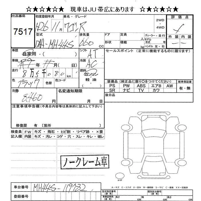 | 20TH ANNIVERSARY CAR | DBA-MH34S | R06A | Full-time 4WD | CVT | 658cc | 52ps(38kW)/6000rpm | AИ-92 | 1 500 120 | |