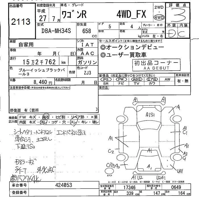 | FX | DBA-MH34S | R06A | Full-time 4WD | CVT | 658cc | 52ps(38kW)/6500rpm | AИ-92 | 1 265 760 | |