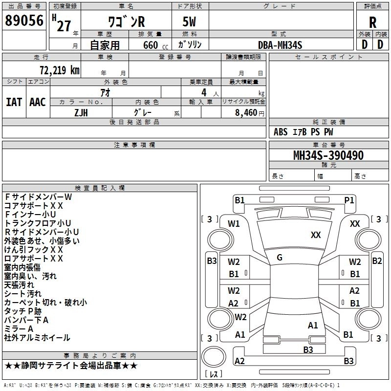 | FX | DBA-MH34S | R06A | FF | CVT | 658cc | 52ps(38kW)/6500rpm | AИ-92 | 1 272 240 | |