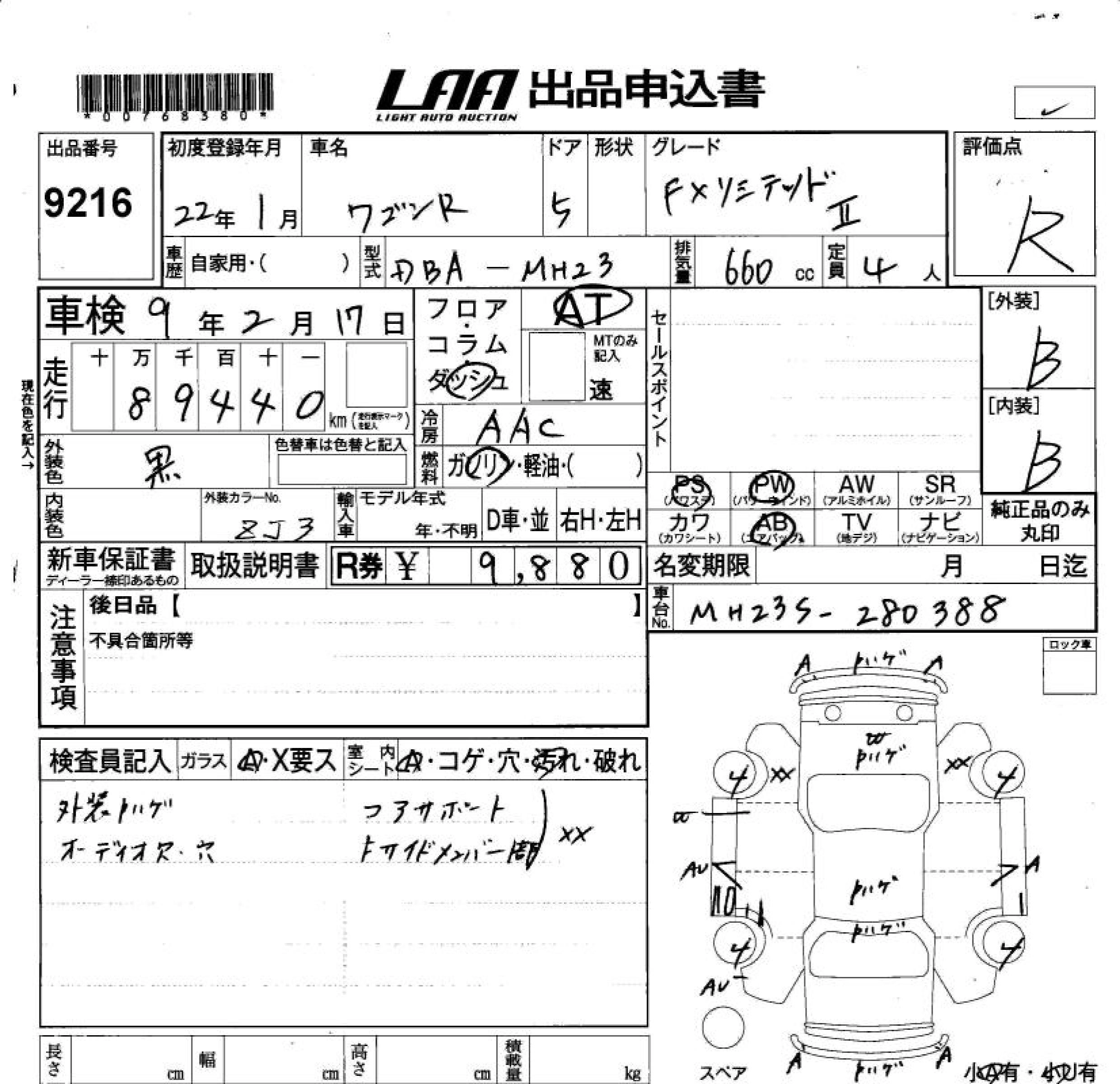 | FX LIMITED | DBA-MH23S | K6A | FF | CVT | 658cc | 54ps(40kW)/6500rpm | AИ-92 | 1 212 750 | |