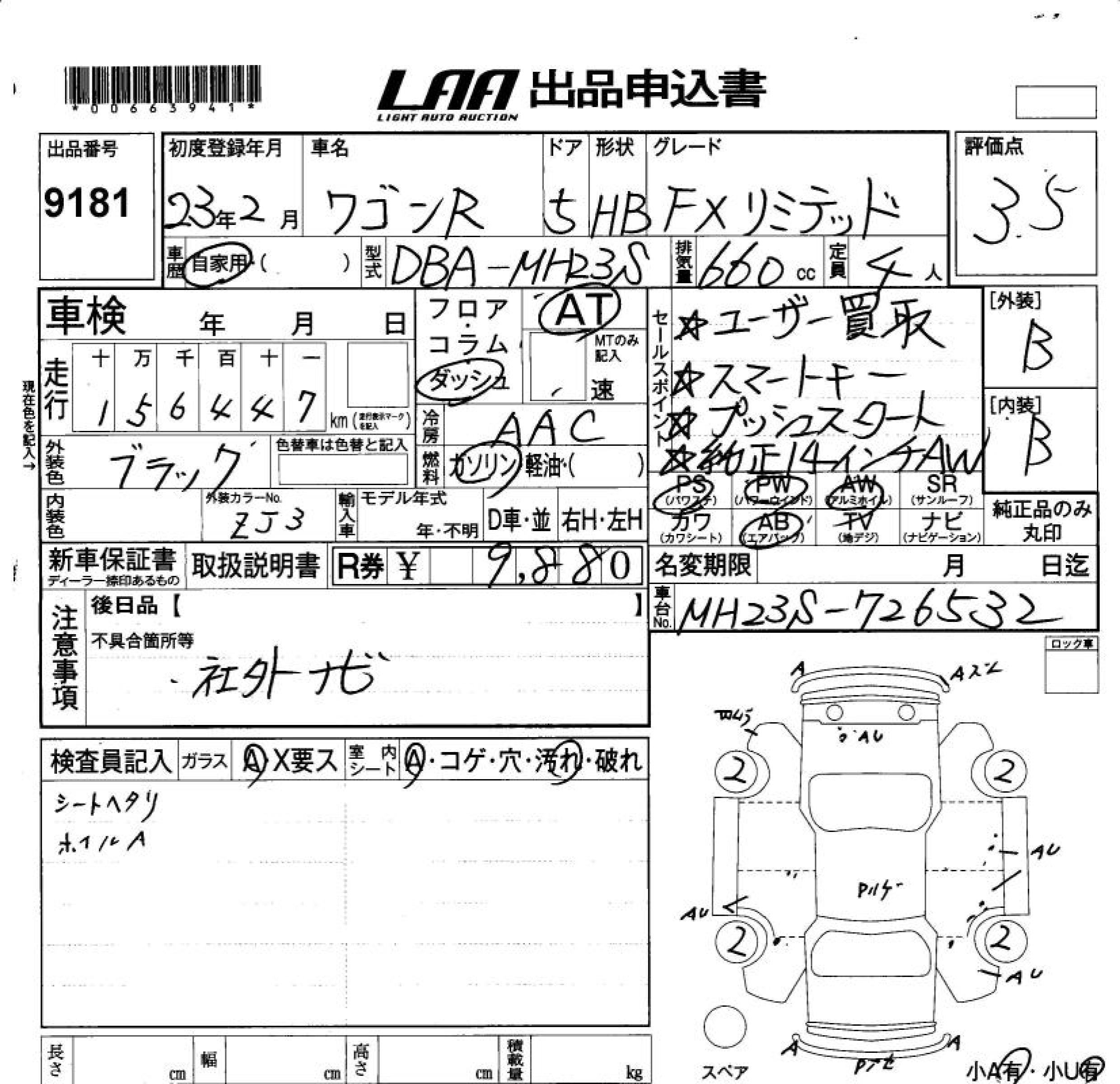 | FX LIMITED IDLING STOP | DBA-MH23S | K6A | FF | CVT | 658cc | 54ps(40kW)/6500rpm | AИ-92 | 1 307 250 | |