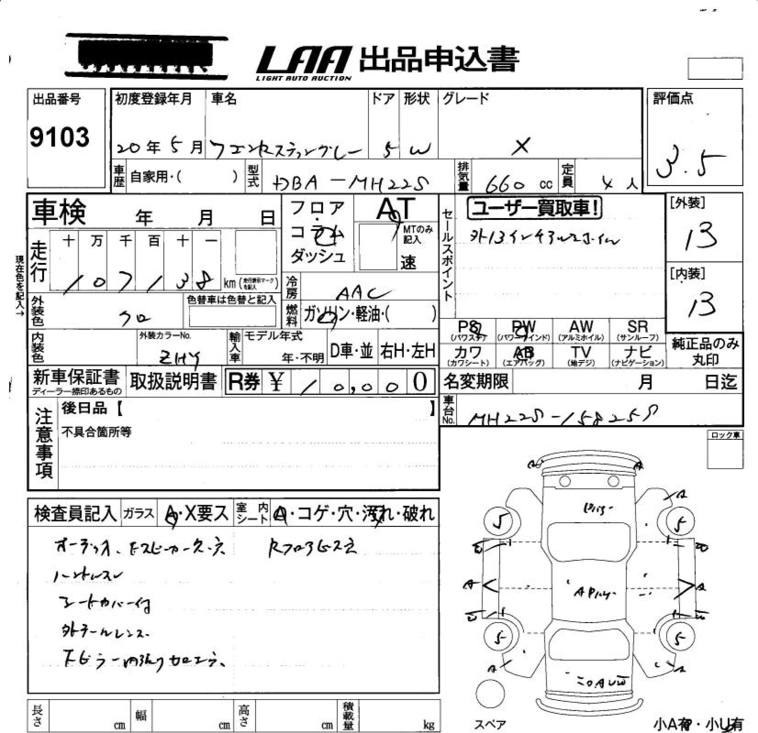 | FX LIMITED | DBA-MH23S | K6A | FF | CVT | 658cc | 54ps(40kW)/6500rpm | AИ-92 | 1 181 250 | |