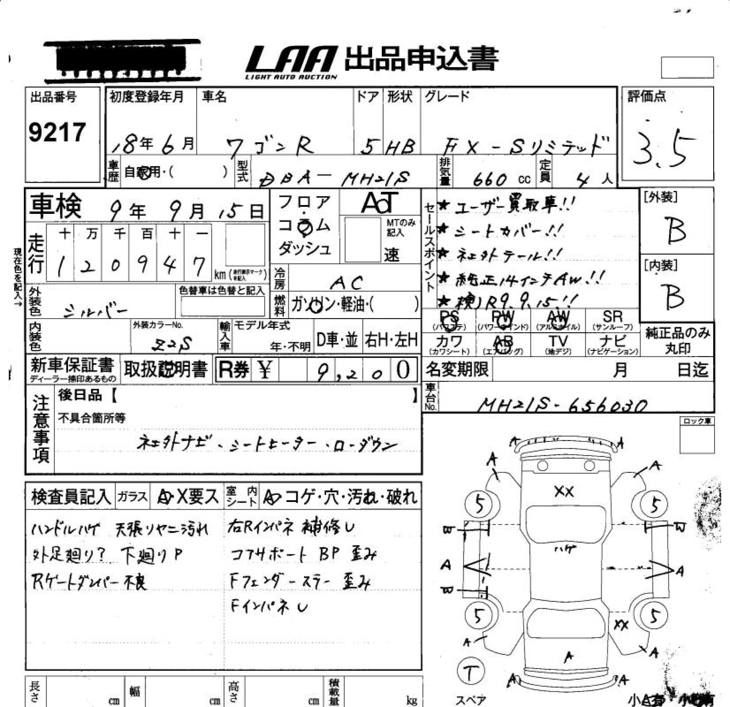 | FX | DBA-MH21S | K6A | FF | 5MT | 658cc | 54ps(40kW)/6500rpm | AИ-92 | 924 000 | |
