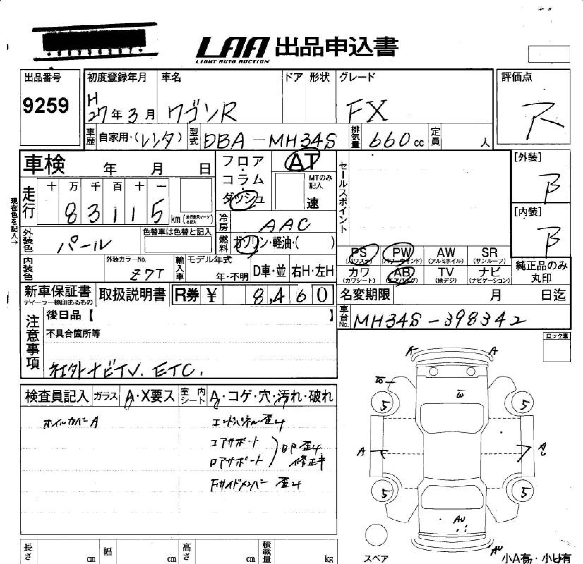 | FX | DBA-MH34S | R06A | FF | CVT | 658cc | 52ps(38kW)/6500rpm | AИ-92 | 1 272 240 | |