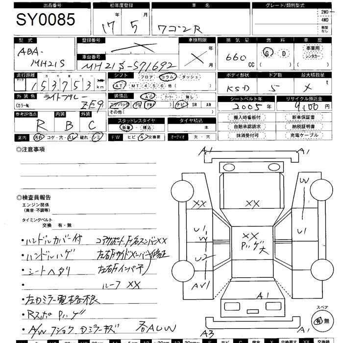 | FX-S LIMITED | DBA-MH21S | K6A | Full-time 4WD | 4AT | 658cc | 54ps(40kW)/6500rpm | AИ-92 | 1 193 850 | |