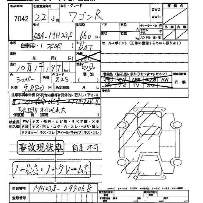 | FX | DBA-MH23S | K6A | FF | 4AT | 658cc | 54ps(40kW)/6500rpm | AИ-92 | 1 071 000 |