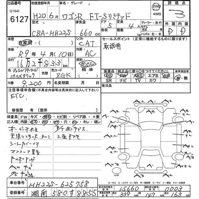 | FX LIMITED | DBA-MH23S | K6A | Full-time 4WD | 4AT | 658cc | 54ps(40kW)/6500rpm | AИ-92 | 1 241 100 | |