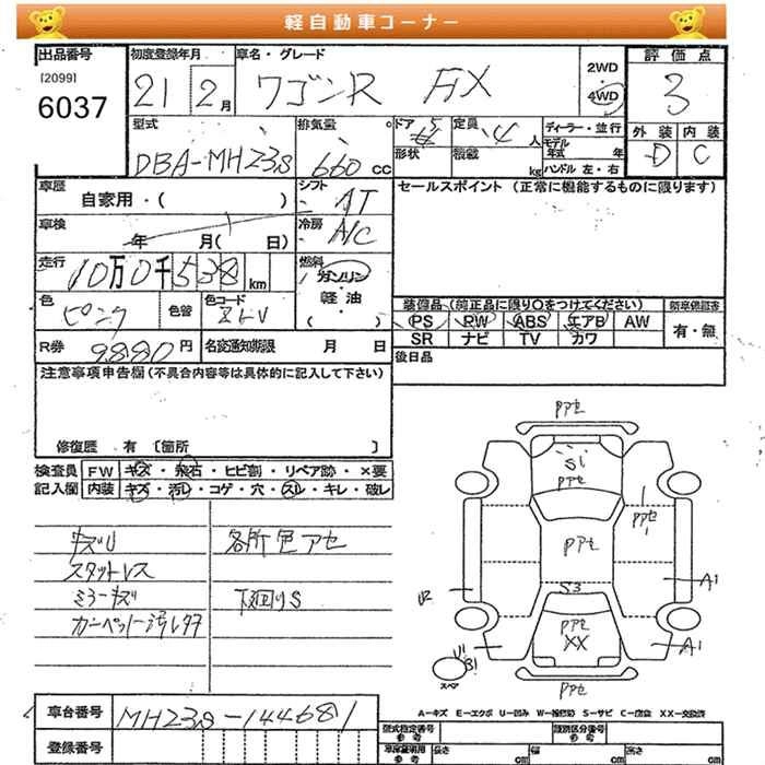| FX | DBA-MH23S | K6A | FF | 4AT | 658cc | 54ps(40kW)/6500rpm | AИ-92 | 1 044 750 |