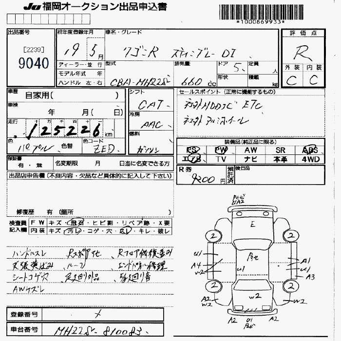 | FX | DBA-MH22S | K6A | FF | 5MT | 658cc | 54ps(40kW)/6500rpm | AИ-92 | 924 000 | |