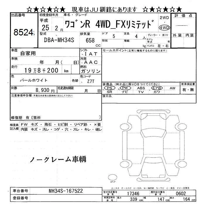 | FX LIMITED | DBA-MH34S | R06A | FF | CVT | 658cc | 52ps(38kW)/6000rpm | AИ-92 | 1 249 500 | |