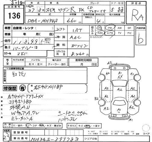 | FX | DBA-MH34S | R06A | FF | 5MT | 658cc | 52ps(38kW)/6000rpm | AИ-92 | 1 134 000 |